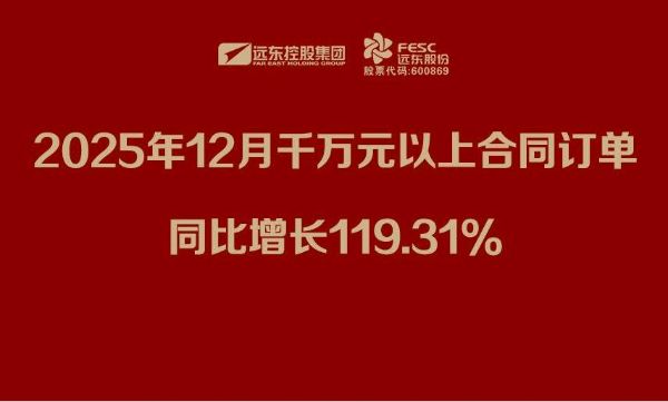 證券時報網訊:1月5日晚間,遠東股份(600869)發(fā)布公告稱,2025年12月,公司收到子公司中標/簽約千萬元以上合同訂單合計為人民幣30.69億元,同比增長119.31%,環(huán)比增長28.81%。1—12月,公司收到子公司中標/簽約千萬元以上合同訂單合計為281.38億元,同比增長14.42%,創(chuàng)歷史新高。